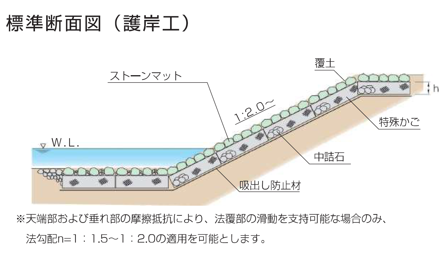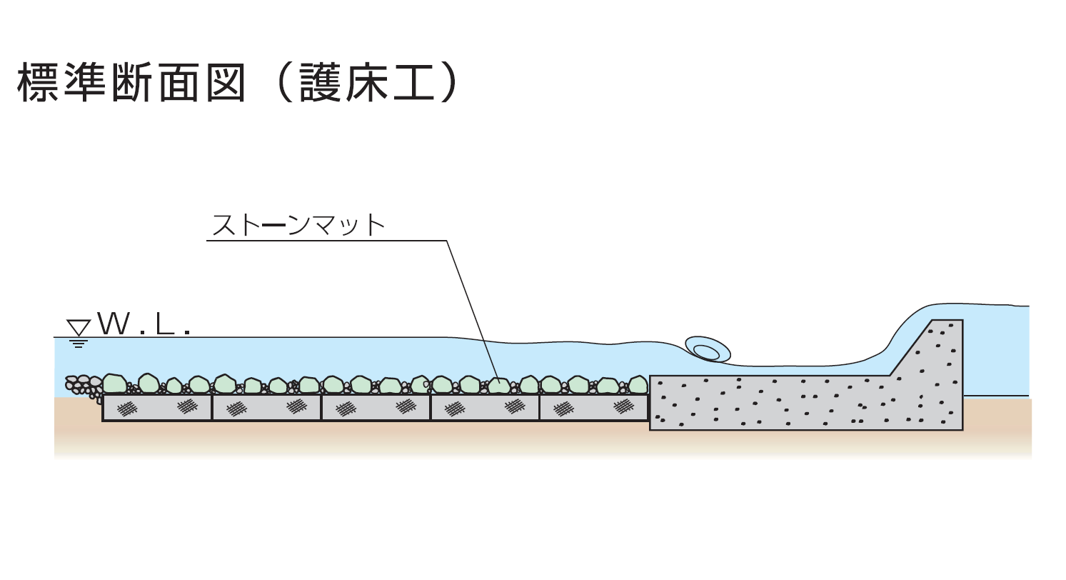 ストーンマット護岸断面図